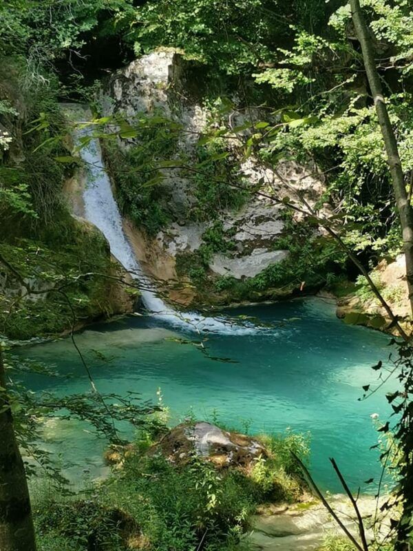 En Baquedano, bajando de Urbasa o subiendo de Estella, merece la pena detenerse en este lugar sacado de un cuento. Las aguas del Urederra brotan de la pared kárstica de Urbasa y bajan juguetonas con agua azul turquesa.