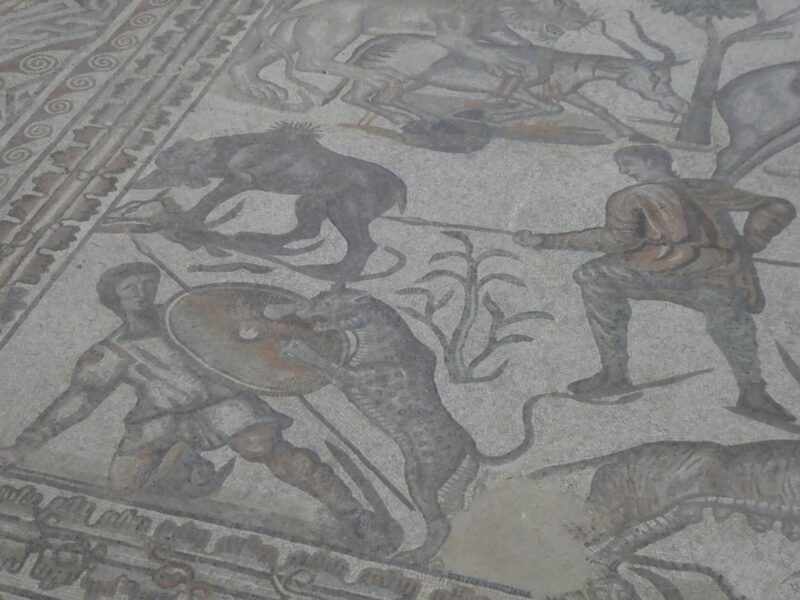 Es uno de los yacimientos arqueológicos más importante del mundo romano hispánico que se conserva. Descubierto en 1968, en 1996 se declara conjunto de interés cultural. Tenemos los restos de una palaciega villa, una gran mansión rural del bajo imperio siglo IV d.c. con una superficie de 4400 m² con 35 habitaciones, y 26 están decoradas con mosaicos policromados in situ.