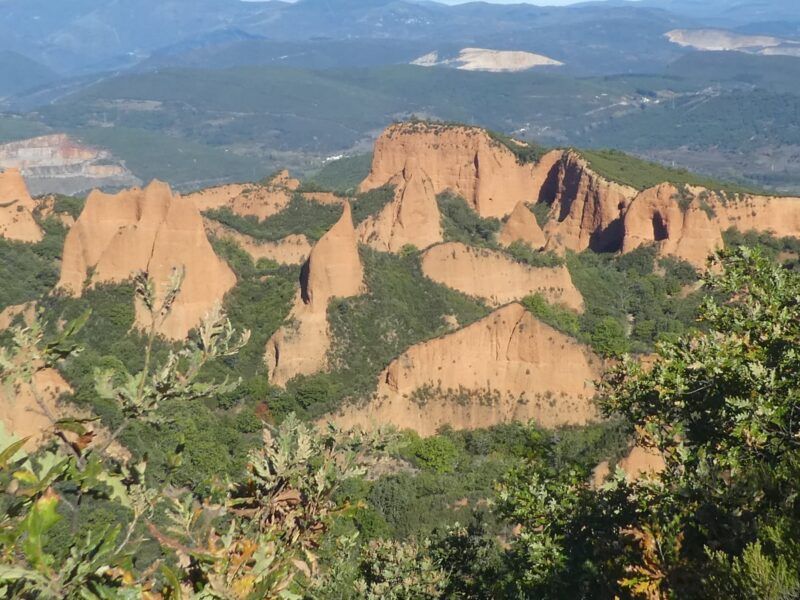 Todo ello se formó por la labor de extracción del oro, en la mayor mina romana a cielo abierto que reclutó hasta 60.000 trabajadores. La sensación es la admiración hipnótica en la visión del paisaje , tanto en la excursión del sendero de las Valiñas a pie de los picos como desde el mirador de Orellan, que ofrece un generoso, fantástico, y asombroso panorama. Una vista de ensueño, que atrae y fascina, una magia con los despeñaderos que parece se abrazan.