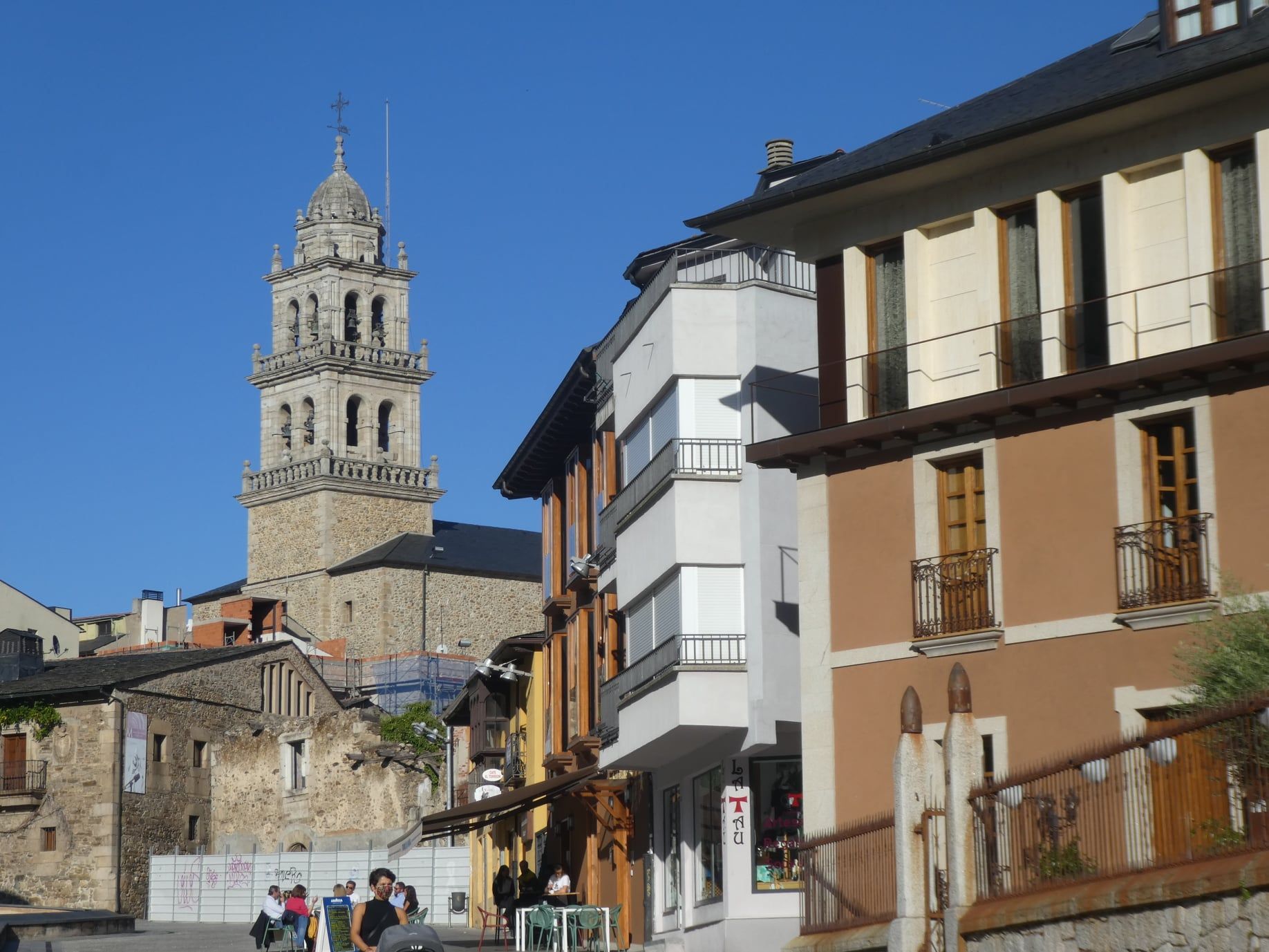 Vimos el viaducto de Fuente Quintana con su escultura del peregrino vigilante, la iglesia San Nicolás el Real, la Colegiata Santa María y la importante y nombrada calle del agua, que permite atravesar la ciudad caminando o en bici entre casas solariegas con escudos nobiliarios y palacios como el de Torquemada y más detalles que despiertan el interés del visitante. Parece que aquí el tiempo se ha parado.