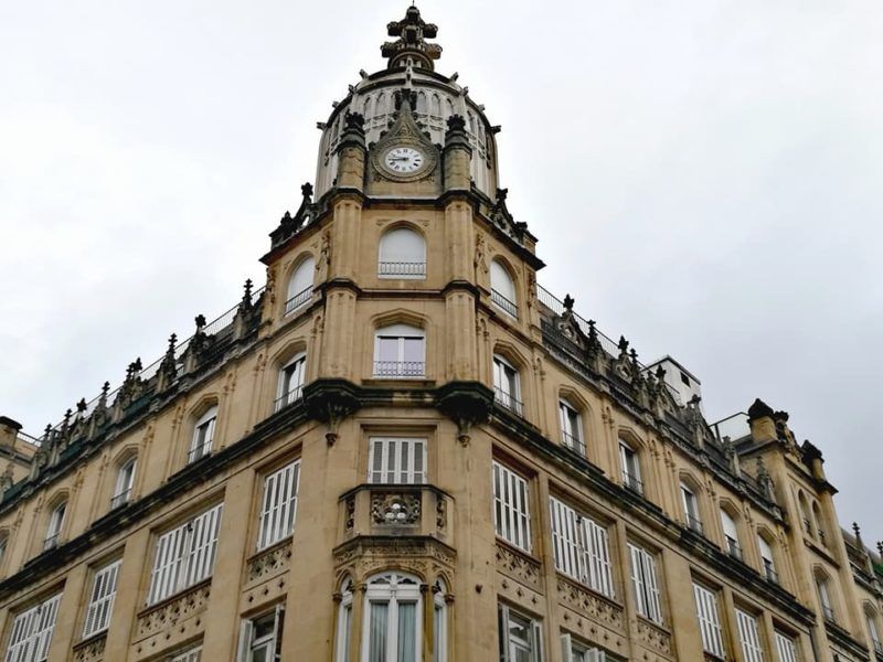 Su fachada blanca y sus remates de colores llenos de adornos hacen de este edificio el más bello de la ciudad justo en la entrada de Gros tras pasar el Puente de Santa Catalina y junto al edificio de la “ Equitativa “.