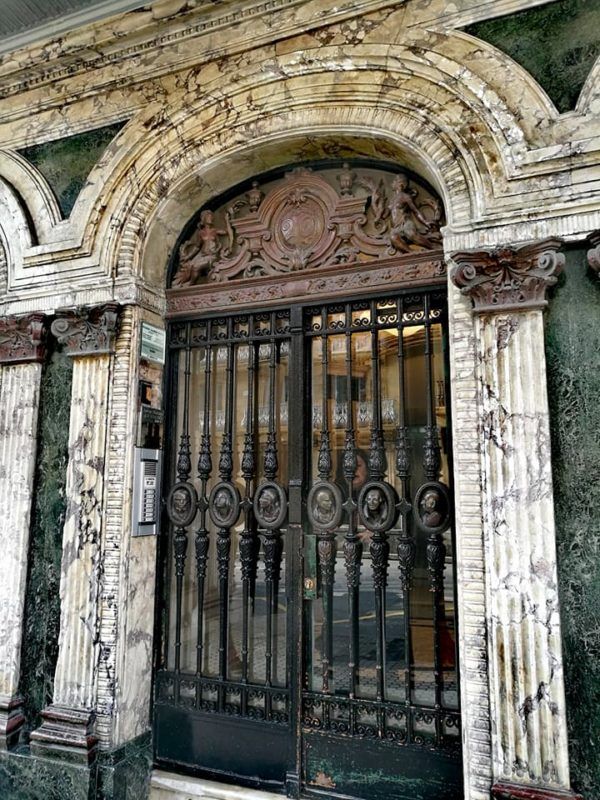 En pleno centro y justo enfrente del FNAC conviene detenerse y disfrutar de este edificio rematado con dos torres voladas sobre los miradores espectaculares, posiblemente las más bellas de la ciudad. El portal también merece una visita con orfebrería muy rica. Seis rostros humanos que desconocemos a quienes pertenecen.
