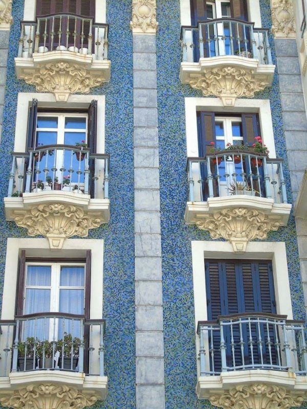 Poco dada a pasear, la Calle Prim merece una visita tranquila desde la Plaza de Bilbao hasta la Plaza del Centenario y “ Casa del Aguila “ pues hay edificios maravillosos. Enseguida de la Plaza Bilbao vemos el número 17 de Prim con una fachada de mosaicos Art Nouveau muy habituales en Europa y que se repiten en la fachada del lateral del Paseo Arbol de Gernika.