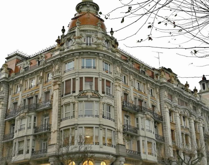 Bellísimo. Como conjunto quizás el número uno pues abarca la manzana completa de la Calle San Marcial ( la más cercana a la Avenida ), Getaria ( ahora con centro comercial importante ) y Arrasate donde está la fachada antigua de la Caja de Ahorros y Monte Piedad que data de 1889-1903 según vemos en el número 12 de Arrasate. Las dos cúpulas con reloj son una maravilla.