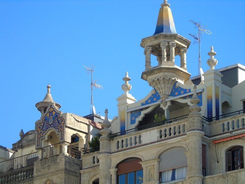 Nuestra fachada favorita. En el barrio de Gros justo en la entrada de la Iglesia de San Ignacio y junto a la Plaza de Catalunya. Esta fachada curvada en blanco y verde es sin duda diferente a lo habitual con remates bellísimos. Además es zona de muy buen ambiente por lo que no hay excusa para disfrutar de este edificio.