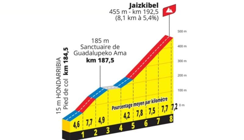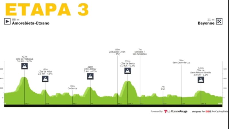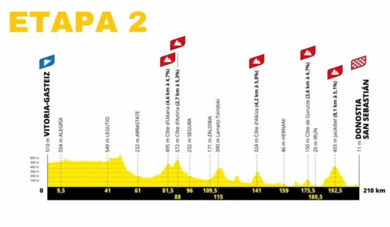 Será la etapa más larga del Tour y bastante selectiva con la subida de Jaizkibel a solo 17 kilómetros de meta, pues se subirá por Hondarribia para bajar a Lezo, tal y como se hacía en las primeras clásicas de San Sebastián, las que ganaba Marino Lejarreta.