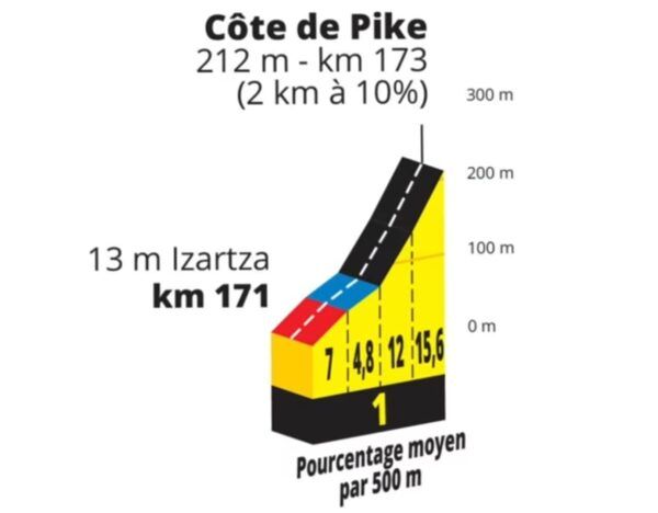 Trazado quebrado, como corresponde al territorio vasco, sobre todo en los últimos 50 kilómetros con las subidas a Morga (3ª), Vivero (2ª) y un gran remate como la cota de Pike(4ª), un verdadero muro al estilo de las clásicas belgas, que quedará a diez kilómetros de meta, con su kilómetro final al 13,8%, que romperá el pelotón. Un motivo más que sobrado para que los favoritos estén muy atentos.