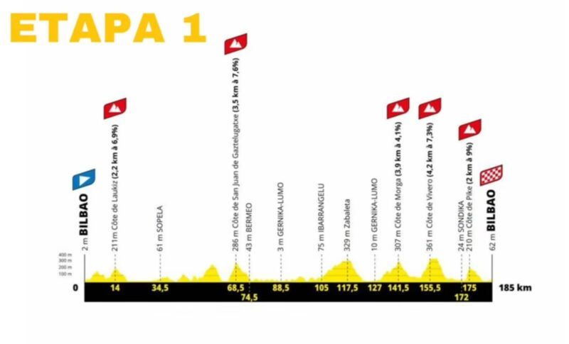 PRIMERA ETAPA: 1 DE JULIO. BILBAO – BILBAO. 185 kilómetros.