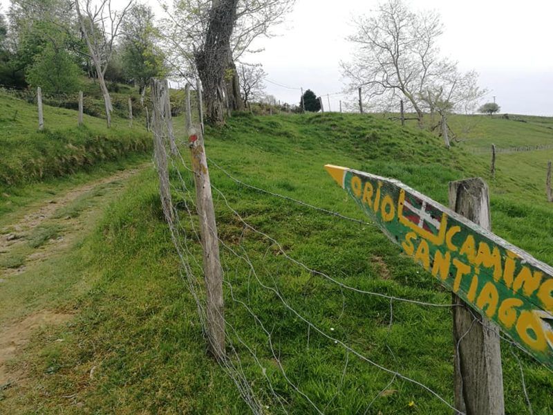 - El sendero termina en otro cruce donde tomaré la pequeña carretera que sube desde Orio hasta Igeldo, con otro cartel que seguro hará disparar nuestra cámara de fotos.
