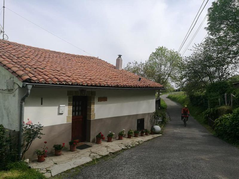 - El camino sigue muy amable mientras comprobamos que es muy frecuentado por excursionistas y amantes de la mountain bike. Caseríos, prados, vacas, ovejas… salen al paso.