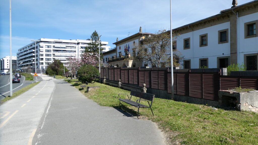 Y en pocos metros se finaliza el recorrido en el puente “Poligono 27 -Lugañene” que como es habitual toma el nombre del caserío. Y hay que regresar cerrando el círculo, ahora por la otra margen del barrio, pasando por la cárcel de Martutene, inaugurada en 1948, tras el cierre de la prisión de Ondarreta, y a la que le queda poco tiempo en su actual ubicación pues se trasladará a Zubieta y donde se rematará el desarrollo del barrio con nuevas viviendas y equipamientos vecinales.