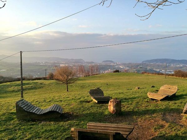 Después nos fuimos a Petritegi, para nosotros, templo de la sidra, ahora con su bello hotel rural Sagarlore. Ahí comprobamos que en efecto la sidra de este año tiene más cuerpo y un poquito más de alcohol. Y de allí subimos en atardecer idílico por las campiñas de Santiagomendi hasta su ermita.