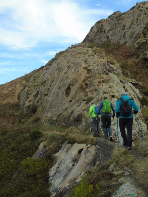Tras la aventura, se abre el panorama y los senderistas AVA, Carlos Saiz, Jesus Mari Alquézar y Enrique Villafranca junto al reportero superaron algún tramo complicado hasta alcanzar más acantilados, que superaban vértigos anteriores.