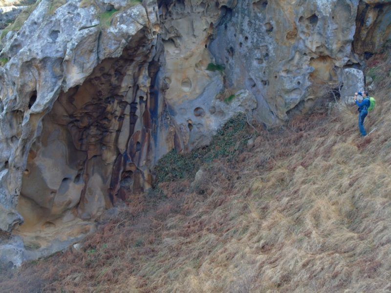 Desde aquí bajamos un poco hasta un valle de nombre Txoritxuluak aunque previamente encontramos una pared bellísima que mereció una parada a fondo, eso sí, con mucho cuidado para no caer en picado por la pendiente…