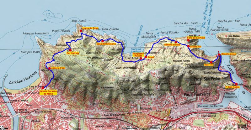 La laberíntica red de senderos, bien conservados que se desarrollan a lo largo de este recorrido mágico posibilita el diseño de varios itinerarios, salvajes y secretos, homologados y catalogados con balizas de diferentes colores (GR, PR, Talaia bidea) a los que hay que añadir los que cada visitante traza a su gusto y condición como la senda litoral. ruta de los acantilados.