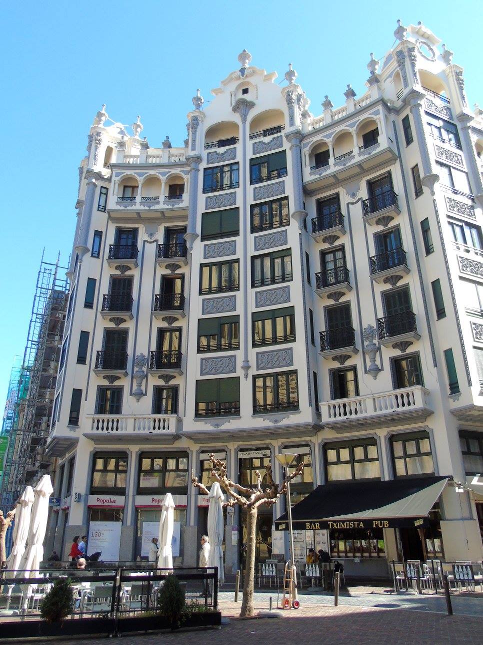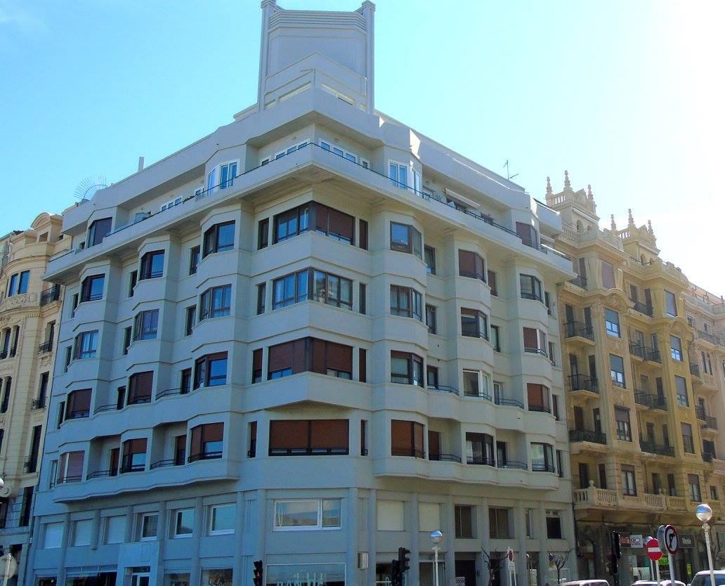 que es un punto de vista inmejorable sobre una construcción sobresaliente en el Barrio, Gloria 3 y 5 con Carquizano 5 sorprendentes realizaciones con apuntes al “Art nouveau” , con miradores con perfil poligonal, (Elizalde del 32), y el adjunto Gloria 7 y Gran Vía 30, la obra contundente del arquitecto Juan Carlos Guerra (del 35), también autor del Aquarium. La forma curva de cada esquina con carácter expresionista constituye un hecho sustancial. Es un trabajo diferente con una delineación geométrica que atrae. Y ahora el caminante tiene varias posibilidades que no deben distraerle.
