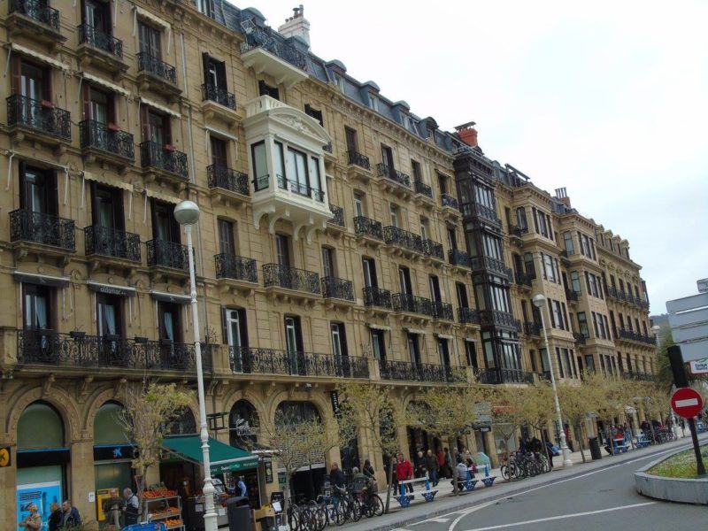 Los últimos momentos culminantes del paseo alcanzan su zenit en un conjunto unitario de casas burguesas que bien merece que nos detengamos. Es la manzana de Reina Regente, 2, 3, 4, 5, 6 y 7, Aldamar 2, 4, 6 y General Echagüe 2 y 4, (José Mª Múgica 1880, Manuel Urcola y Domingo Eceiza 1887) unos edificios de tradición neoclásica, con detalles eclécticos y con esenciales miradores. Y aquí, en el puente se cierra el círculo, aunque ya planeamos otro interesante circuito, desde el puente de la Zurriola hacia el centro, admirando primero los otros dos cercanos edificios singulares y monumentales, el Teatro Victoria Eugenia y el Hotel María Cristina. Pero esa será otra historia.