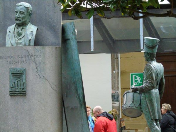 No se debe dejar de fotografiar, enfrente, la inconfundible estrecha y larga plaza Sarriegi, muchas veces remozada, donde destaca el monumento al tamborrero que homenajea a Raimundo Sarriegi, autor entre otras muchas obras, de la gloriosa Marcha de San Sebastián compuesta en 1861, cuyas frases están inmortalizadas en la escultura.