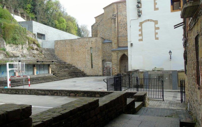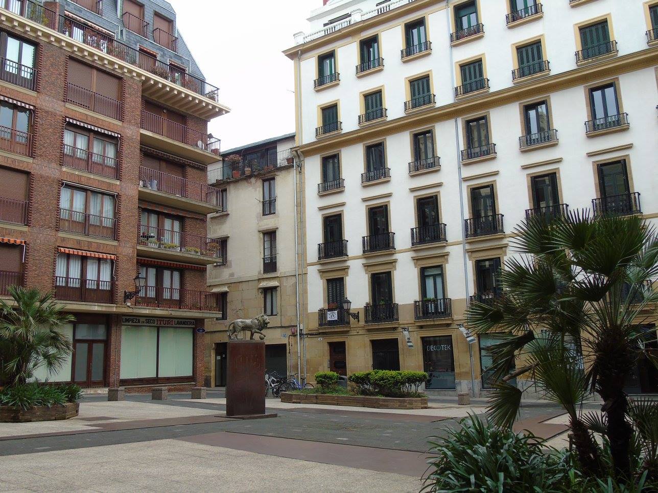San Sebastián es una ciudad de espacios abiertos y así los justifica esta gran plaza cerrada por la imponente iglesia fortaleza de San Vicente, el monumento más antiguo de la ciudad, con característica de un gótico decadente de los del Siglo XV y principios del XVI, (Miguel de Santa Celay y Juan de Urrutia 1507) y en su costado está la casa 31 de agosto 10, 12 y 14, tres edificios con muestra medieval que no se destruyeron entre las 36 de las 600 intramuros en el incendio de 1813. Y además en su chaflán de la plaza destaca un gran mural de Terracota de Eduardo Chillida hijo, conocido como “Beste aldean”.