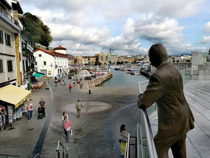 El puerto donostiarra tiene mucho encanto, a pesar de no ser lo que era, cuando su esplendor nadie discutía. A pesar de ello es de visita obligada, para propios y extraños. Sus casas de pescadores, uniformes de poca altura, con sus comercios de “souvenirs” y sus diferentes y atractivos restaurantes especialidad “fruits de mer” en sus terrazas porticadas bajo el castillo asentado en la parte alta del monte Urgull son parte importante del paseo al borde del mar hasta el Aquarium, pasando antes por la escultura de Aita Mari, busto del ilustre marino y pescador “José Mª Zubia Cigarán, que tantos naúfragos salvó de morir ahogados y que luego sucumbió de esa manera en 1866.
