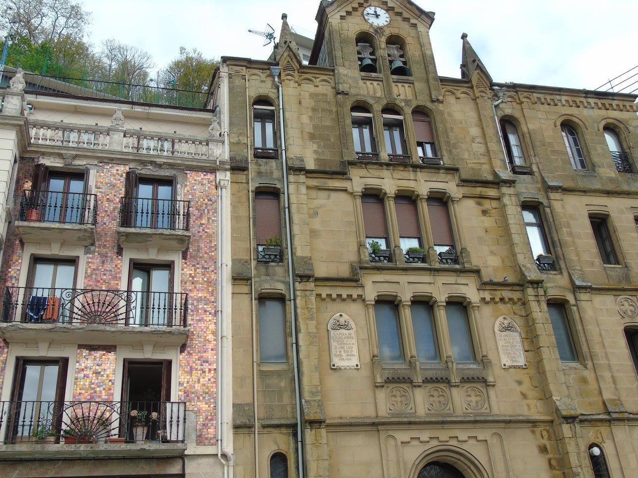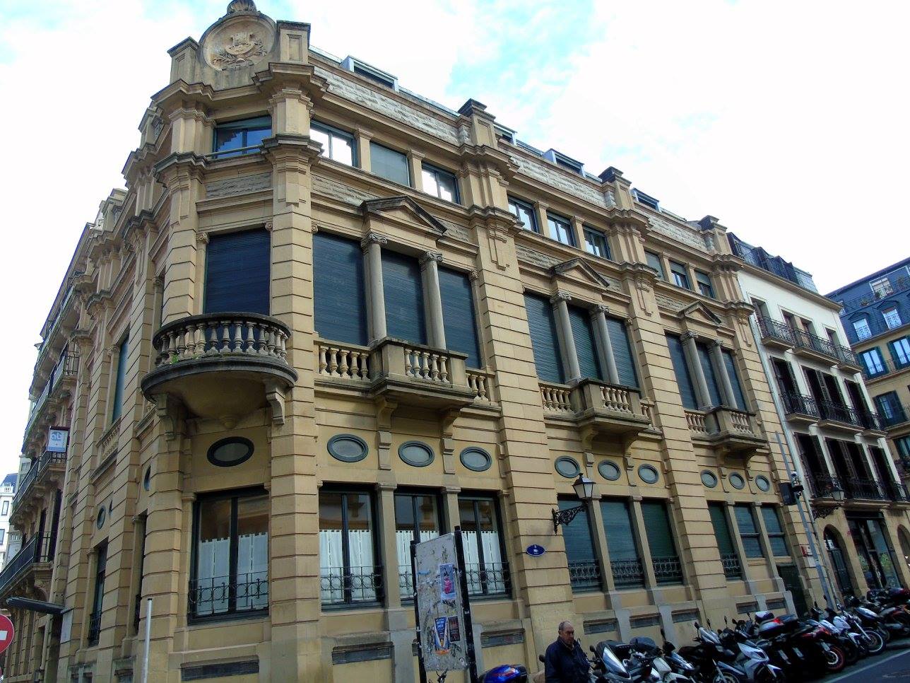 No hay descanso en este paseo que estás leyendo. Hay que circunvalar la iglesia y acercarse hasta el singular edificio “Las escuelas Zuloaga” Aldamar 3-A (José de Goicoa 1901), de tendencia neoclásica con una imagen masiva y pesada. Y allí al lado en San Juan 6, otro conjunto arquitectónico destacado (José Gurruchaga 1910) un edificio de contrastes que impresiona en su visita con fachada monumental neoclásica (actual sede del Orfeón donostiarra) y separado de otro sobrio y gran edificio, San Juan 4, Iñigo 16, el antiguo mercado de la Pescadería que no hubiera debido desaparecer como tal (Juan Rafael Alday 1928)