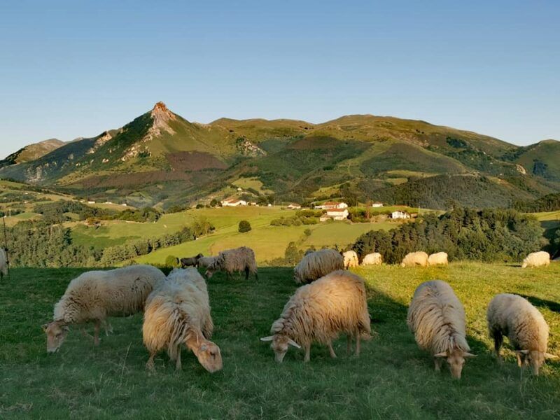 Con suerte, y esta vez con el sol a mi espalda, veré más limpia la montaña. Vuelvo hacia Ikaztegieta y más adelante hasta Alegi para seguir las indicaciones de Amezketa-Orendain. Cinco kilómetros de carretera me llevan hasta Orendain. Muy cerca, la granja de Larreta donde podré comprar, si se tercia, queso, yogures y el citado helado.