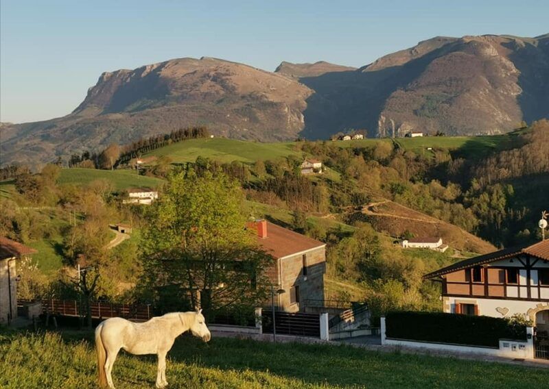 Dos kilómetros de prados y la Sierra de Aralar con los colores de la tarde, me hará disfrutar del entorno rural.
