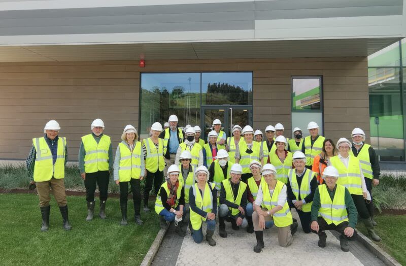 Tras la colocación de los correspondientes EPIS (equipos de protección individual): calzado de seguridad, casco, chalecos reflectores…se formaron 2 grupos para las visitas guiadas por el director general y la responsable de las instalaciones, respectivamente.