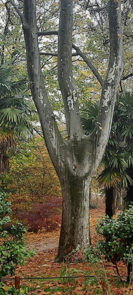 También parcialmente hemos visto algunos de los árboles (palmeras…) detrás del palacio, junto a la capilla y antiguas cocinas, quedando pendiente la amplia zona baja del parque (itinerario rojo).