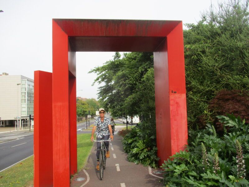 Nace la excursión en el auditorio Kursaal desde donde se sigue el carril bici municipal hasta Ategorrieta, donde encontramos dos emblemas, “el reloj” y la moderna “puerta Ate gorri”. Aquí, paralela a la vía del tren Renfe, se recupera una vigente “vía verde” por donde discurría el, para muchos olvidado, “tranvía blanco Donostia-Errenteria,” y que ahora es paseo de Txaparrene.