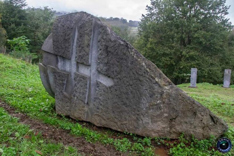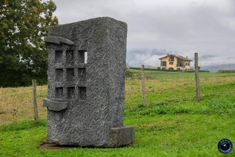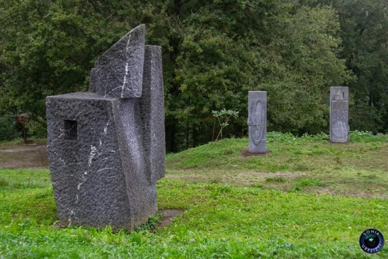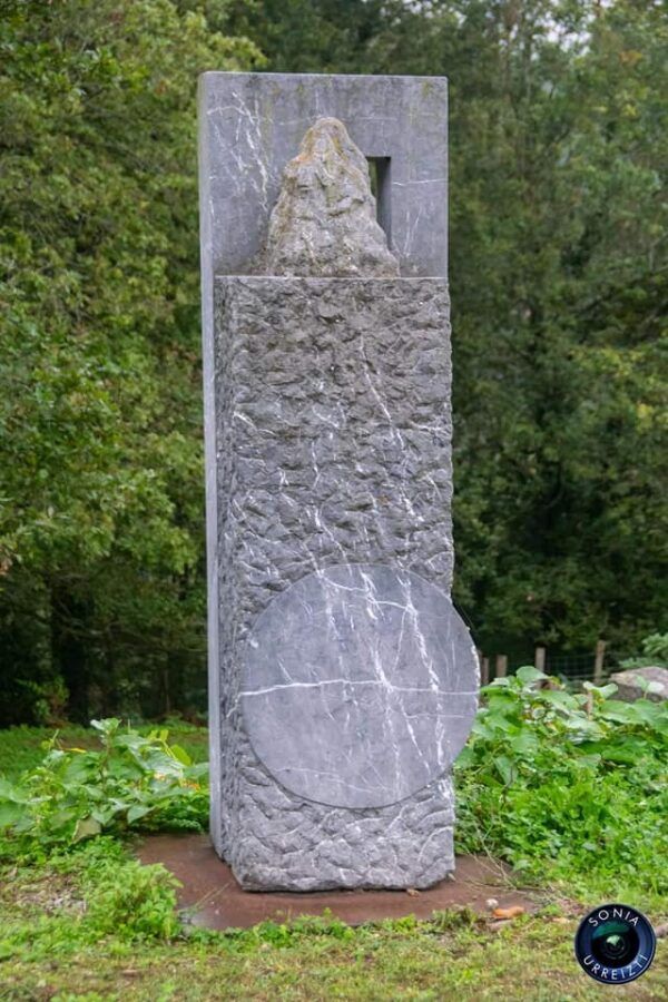 Es de esas sorpresas que en el fondo nos da pena no haberla encontrado antes. La mañana era plomiza con mucha humedad y fina lluvia por momentos pero quizás fue el escenario ideal para recorrer el circuito de este interesante Museo donde la escultura de Koldo Jauregi se integra en el paisaje siempre en las faldas del imponente Hernio.