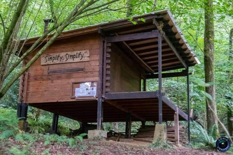 Con el propio Koldo como guía por la espesura del bosque, el sonido de los árboles mecidos por el viento, el canto de los pajarillos y el susurro de un riachuelo saltarín en el fondo del valle, observamos espacios que se habilitan para exposiciones y actuaciones, la antigua calera y un espacio dedicado a Henry David Thoreau, defensor de la vida salvaje.