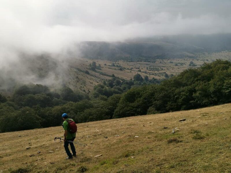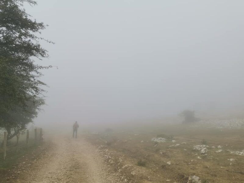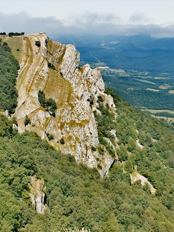 Un deleite visual fue ver a las nieblas dar su último suspiro antes de desaparecer. Las vistas a la Sierra de Aralar al fondo con el Santuario de San Miguel in Excelsis, la Sierra de Andía con el monte Beriain y la ermita de San Donato y todo el cresterío de Urbasa con la cima Ollide a 1134 metros de altitud eran de quitar el hipo.