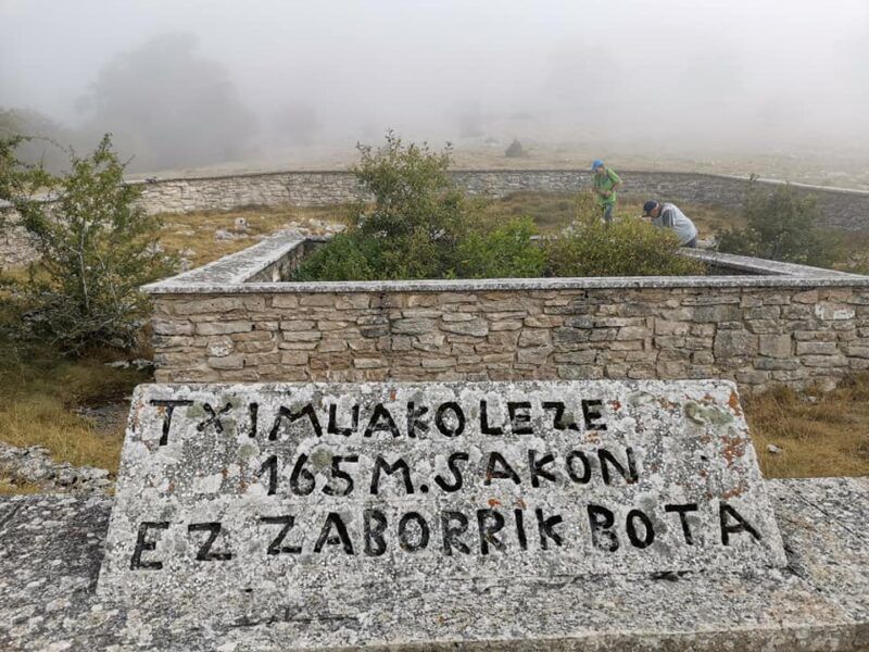 Con explorar unos cuantos tramos será suficiente, más o menos un kilómetro hacia abajo de la senda y otro tanto para arriba. El día iba abriendo ya los cielos y quedaba subir al cresterío no sin antes ver a la altura del tramo Zalbide, la Sima Tximuakoleze con 165 metros de profundidad. Reflejo de lo que significa este paisaje kárstico sobre toda esta zona.
