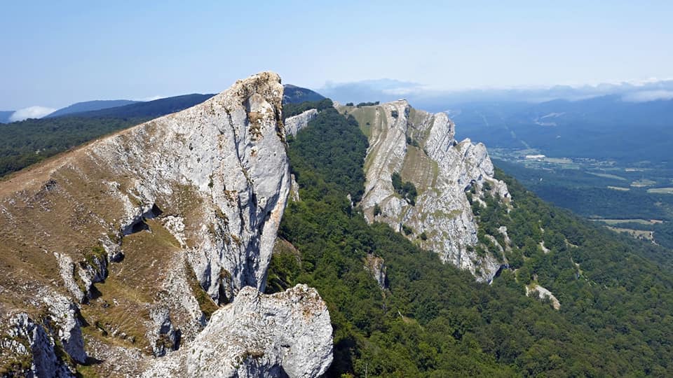 - Foto : Cresterío de Urbasa, cima Ollide y al fondo la ermita de San Adrián. Enrique Villafranca.