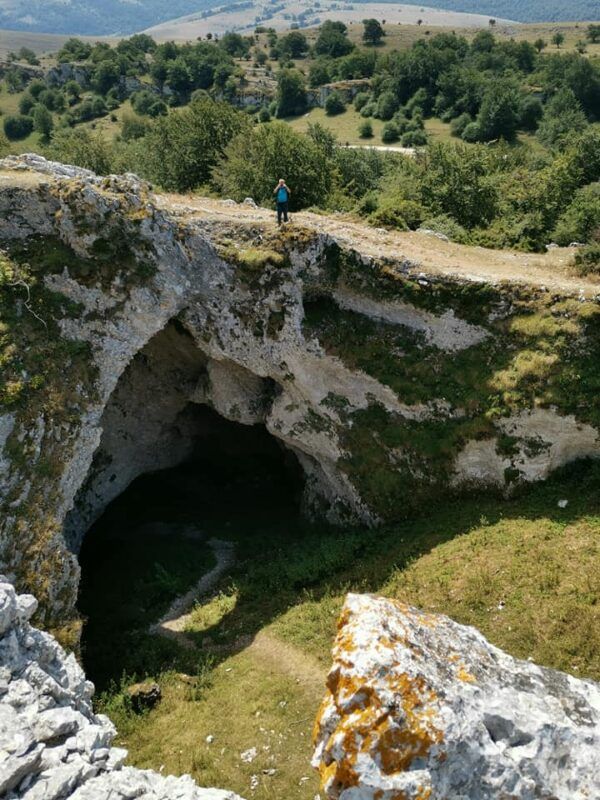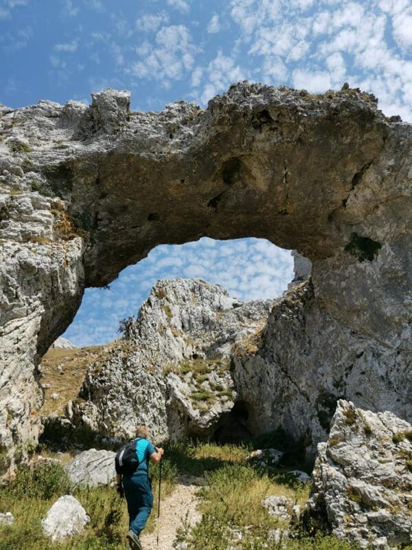 Enseguida vimos la brecha Arrangarte, un descomunal tajo entre las paredes y ya de regreso hacia el Alto de Lizarraga prestamos mucha atención al arco natural y cueva que forma Portupekoleze, otra idea de lo que supone la erosión en este paisaje kárstico. Hasta aquí se podría ir directamente desde el aparcamiento en apenas treinta minutos con tan solo superar el desnivel ( unos 100 metros ) que me lleva desde Ollide Bidea hasta el cresterío.