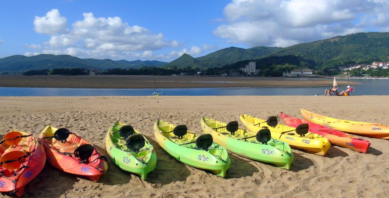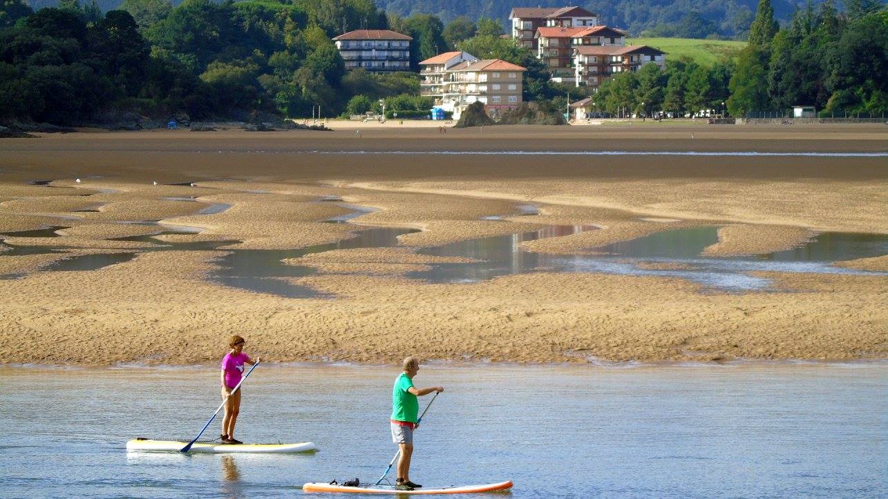 Aunque podré aparcar más adelante, recomiendo hacerlo en el cámping pues su embarcadero me permitirá sacar las primeras y pintorescas fotos. Ya en la playa y con Mundaka al fondo y mientras veo piragüistas por los meandros del río, gente paseando, haciendo footing o surfeando, daré trabajo y del bueno a la cámara de fotos.