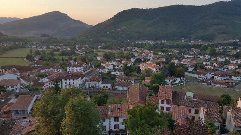 El descenso hasta Baigorri, (Saint Etienne) ya en la Baja Navarra (Pirineos Atlánticos) es espectacular discurriendo bajo la muralla de Iparla con sus desafiantes farallones. El pueblo, a la entrada del valle de Aldude, merece otro pequeño descanso en la terraza en el bar de su plaza, antes de los pocos kilómetros que faltan, donde destacan sus típicas casas vascas, el puente romano y su iglesia de San Esteban.