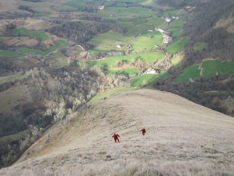 Ya en la misma muga , emergiendo del bosque de Irati, el segundo hayedo mas grande de Europa (el primero es la Selva Negra) entre los puertos de Burdinkutzeta y Bagargi se desarrolla un cordal despejado y balcón sobre la cercana alta montaña pirenaica.