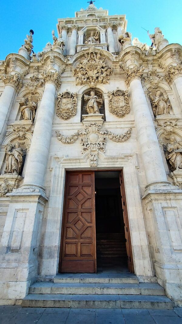 En diez minutos de caminata busco la esbelta Catedral de Valladolid (siglo XVI) con el monumento del Sagrado Corazón y el museo diocesano y catedralicio. Edificio levantado sobre los restos de una colegiata anterior.