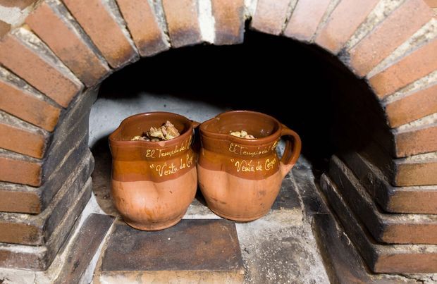 - Tercer vuelco: A quien Dios de la de, San Pedro se la bendiga. Carne, garbanzos de la zona de Segovia, morcilla, chorizo, pie de cerdo, oreja, patatas, zanahoria… Y una sabrosa “bola” que se hace con la trufa negra de Soria. Al echarse al cocido se infla y absorbe toda la grasa. Todo esto se cocina en horno de leña, vuelco a vuelco.