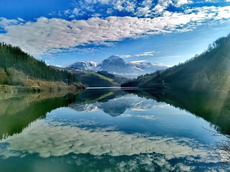 Ibiur es un embalse reciente, pues se terminó de construir, no sin polémica, en el año 2008 por lo que es posible todavía haya mapas que no lo incluyen. Recoge las aguas del río que lleva su nombre y, sobre todo, es conocido como “el espejo del Txindoki”. Si las aguas están en calma y hay suerte con las nubes haremos disparar la cámara de fotos una y otra vez.