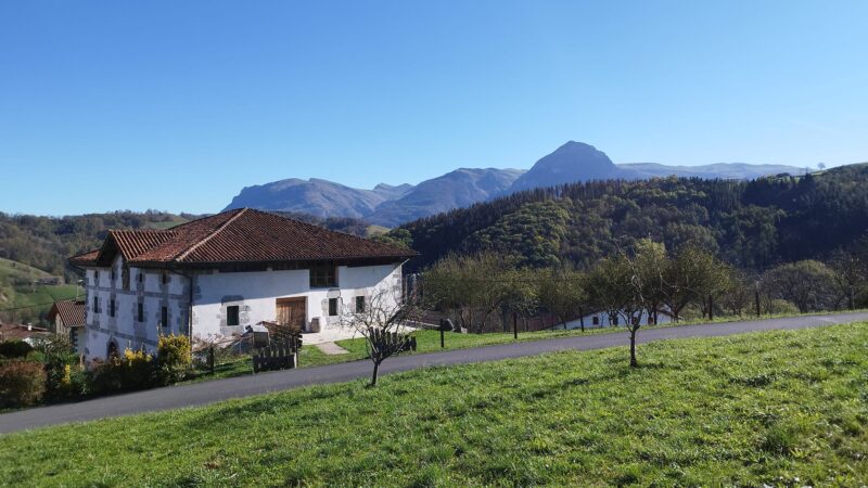 Os recomiendo subir un poco más por carretera hasta encontrar este balcón sobre Baliarrain con la sierra de Aralar como telón de fondo. Al lado mismo de un caserío podréis aparcar y sacar esta foto que gana mucho más al atardecer.